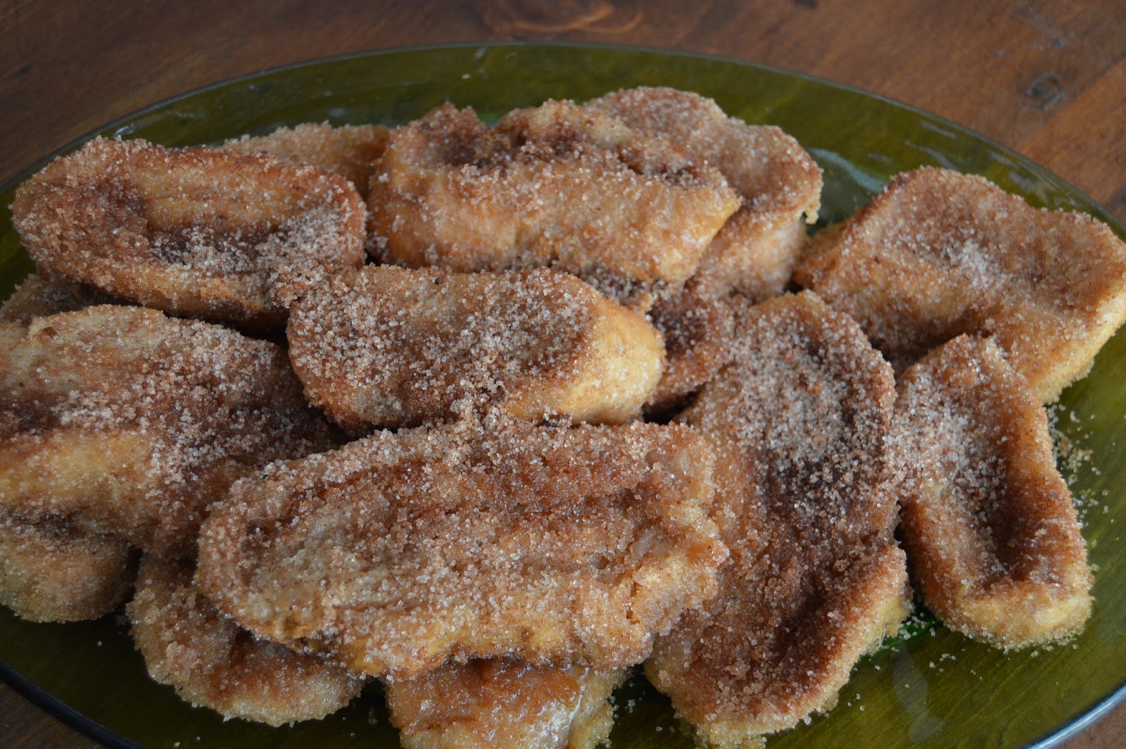 Y por último preparamos un plato con azúcar y una cucharada de canela mezcladas.